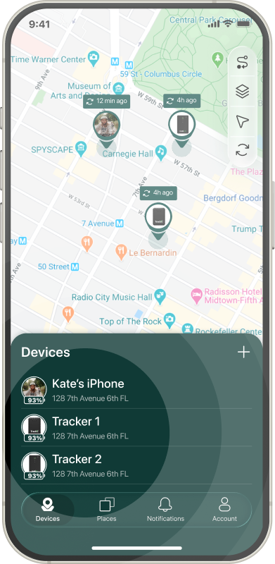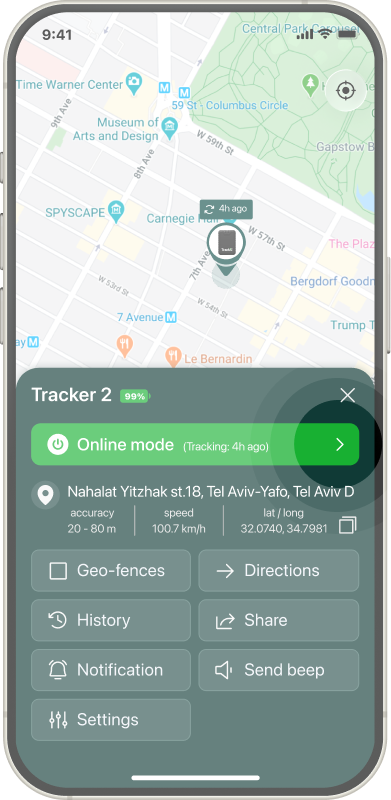 To turn on Flight mode - on the Devices tab tap on the tracker you want to change mode.