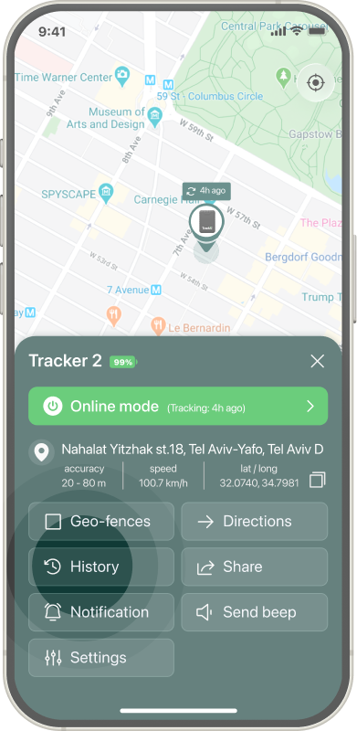 To see the history of the tracker - on the Devices tab tap on the tracker you want to check the history for.