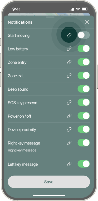 To access notifications settings - open the Devices tab and tap on the tracker you want to enable/disable your notifications for.